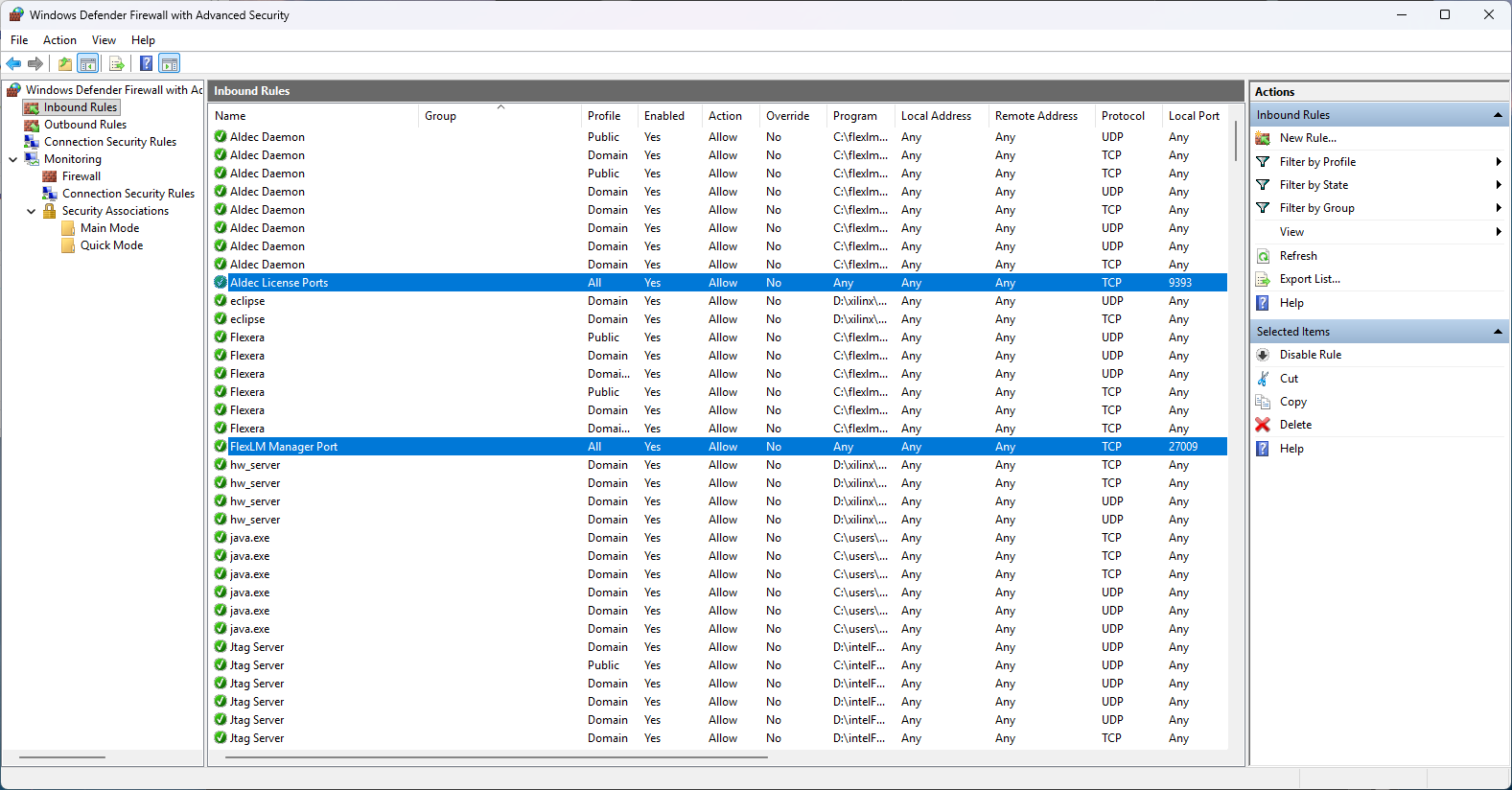 There are instances where your Windows Firewall may be blocking the TCP ports required to run the license server. For the default case, this would mean ports 27009 and/or 9393 must be opened through Windows Firewall on the host machine by adding Inbound Rules for these ports.